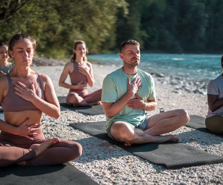 You start the day with soft yoga, breathwork, or meditation — barefoot on the beach or on deck beneath the rising sun.